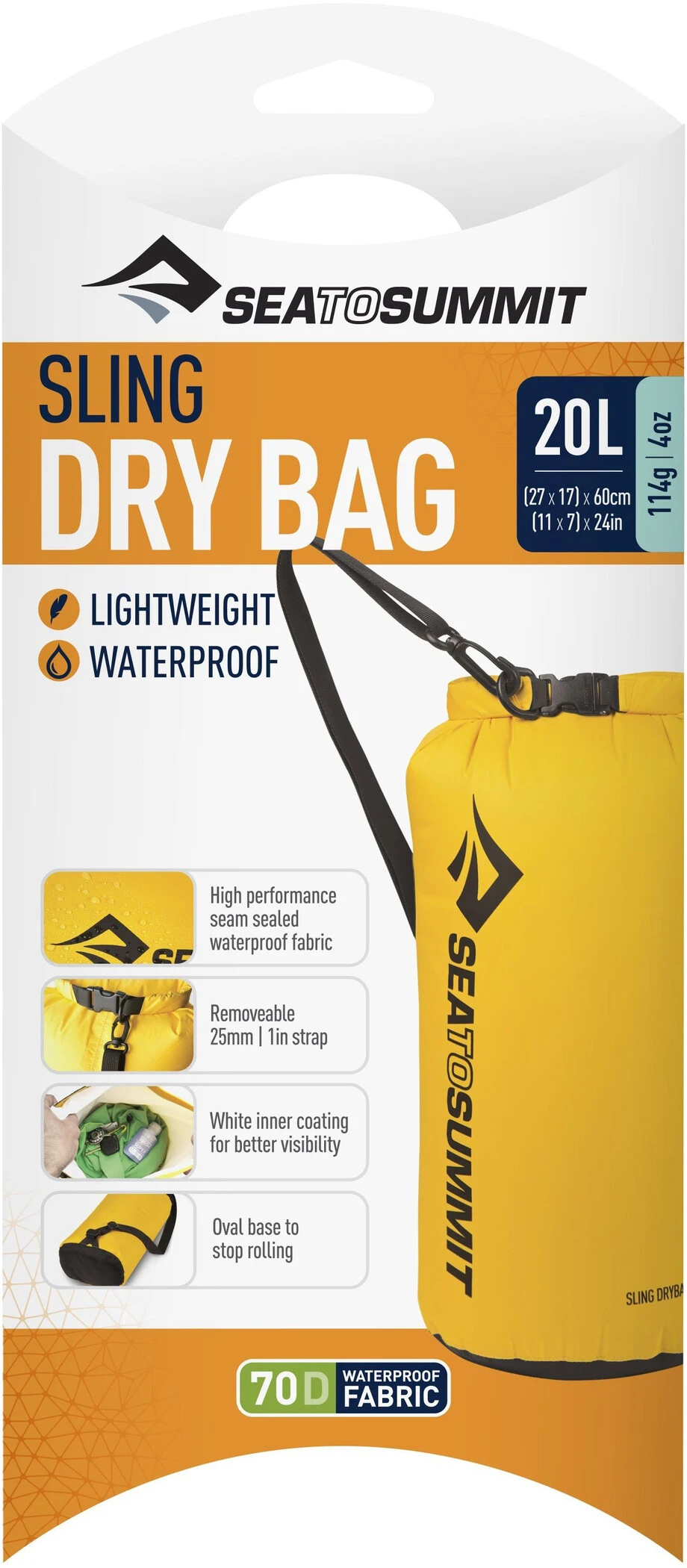 Les sacs secs en bandoulière sont le meilleur moyen de transporter votre équipement à l’épreuve de l’eau. Le Sling Dry Bag est le produit idéal pour vous accompagner à la plage ou à la piscine et pour protéger vos bagages des averses spontanées en excursion. Le tissu en nylon 70D offre une durabilité et une résistance énormes. Il résiste aux essais avec une colonne d’eau de 10 000 mm. Sea to Summit est équipé d’une bandoulière étroite de 20 mm, ce qui rend le sac confortable à transporter. La longueur de la bandoulière peut être facilement ajustée à l’aide de la boucle tri-glide intégrée.