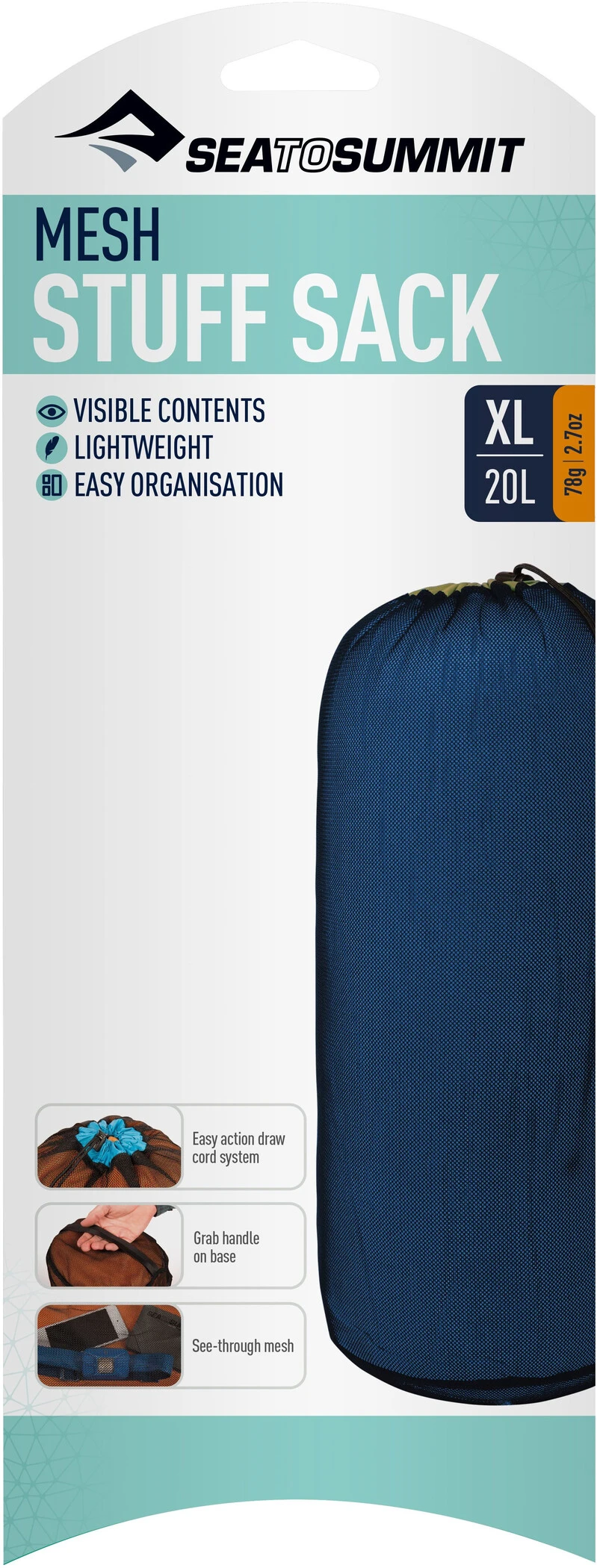 Les sacs en maille de Sea to Summit respirent ! Ils ont des caractĂ©ristiques similaires Ă celles des Stuff Sacks, ce qui les rend parfaits pour les sacs de couchage et les vĂŞtements mouillĂ©s, le sĂ©chage Ă l’air libre de l’Ă©quipement au camp ou la collecte d’animaux marins. L’organisation de l’Ă©quipement est facilitĂ©e par une housse Ă cordon de serrage sur le dessus. Ils sont constituĂ©s d’un filet durable, ce qui te permet d’identifier facilement leur contenu.
